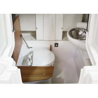 Člun Marlin se sklolaminátovým trupem a nafukovacími válci. Délka 8,60m, šířka 2,92m, hmotnost 1800 kg, 12 osob, 300 l palivová nádrž, Mercury Diesel 4.2 DTS B3XR , TDI, 370 HP
